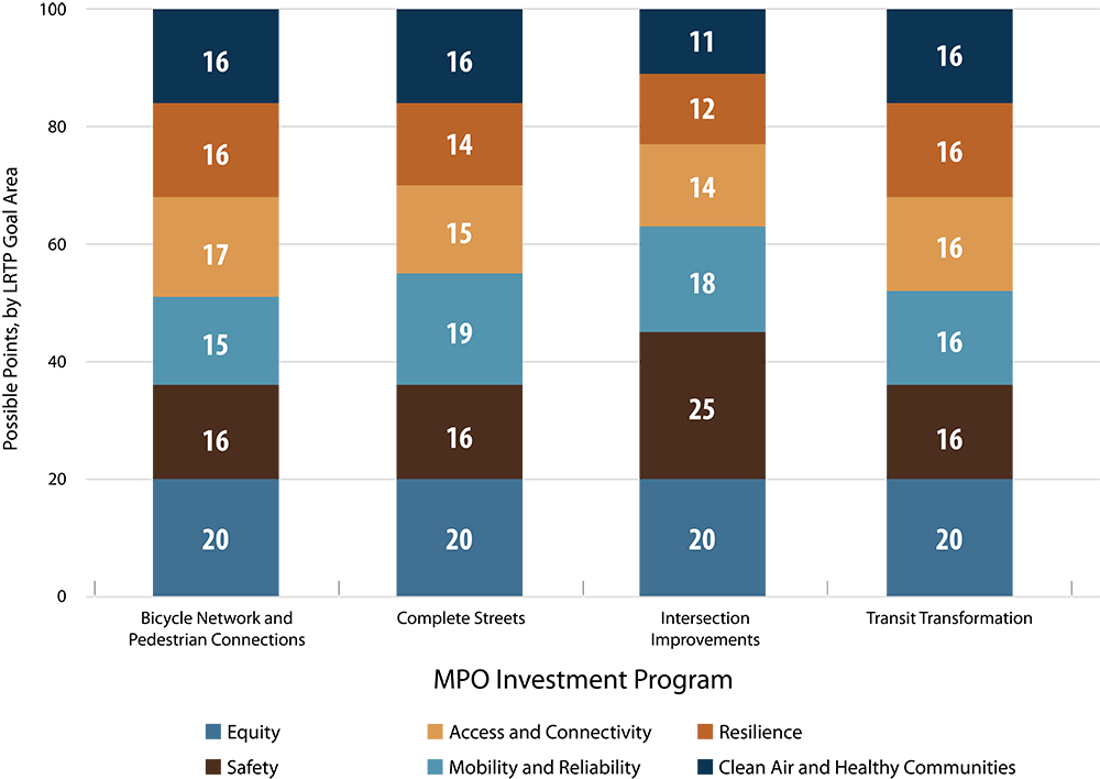 Guided by the Boston Region MPO’s vision, goals, and objectives, the TIP prioritizes investments that preserve the current transportation system in a state of good repair, provide safe and reliable transportation for all modes, enhance livability, support clean air and healthy communities, promote equity, resiliency, and sustainability, and improve mobility throughout the region. These investments fund arterial roadway and intersection improvements, maintenance and expansion of the public transit system, shared-use path construction, first-and-last-mile improvements for users of active transportation, and major highway reconstruction.