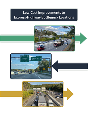 The purpose of the Low-Cost Improvements to Express-Highway Bottleneck Locations study was to identify low-cost improvements that will help reduce congestion at freeway bottleneck locations in the Boston Metropolitan Planning Organization (MPO) region. The study was accomplished through cooperation with the Massachusetts Department of Transportation (MassDOT) Highway Division.