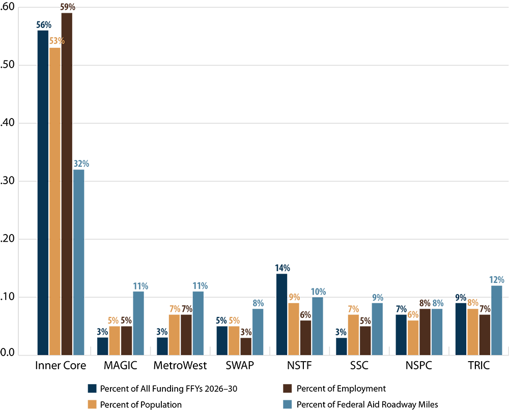 In addition to project scores, several other factors are taken into consideration by the MPO when selecting projects for funding. Table A-2 describes many of these elements, including the relationships between the MPO’s FFYs 2026–30 Regional Target projects and the MPO’s Long-Range Transportation Plan (LRTP), studies and technical assistance conducted by MPO staff through the Unified Planning Work Program (UPWP), the federally required performance measures discussed in Chapter 4, and Massachusetts’ modal plans. These projects are listed by MPO investment program. More details about each of these projects are available in the funding tables and project descriptions included in Chapter 3. Performance-related information for the FFYs 2026–30 Regional Target projects is included in Chapter 4, and information about greenhouse gas (GHG) emissions for these projects is available in Appendix B.